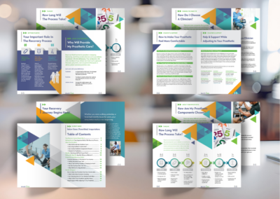 The branding was applied to a brochure aimed at recent amputees, with an emphasis on “movement” and “mobility” as uplifting, subliminal themes throughout the design. The client was thrilled with the result and felt the visuals communicated their brand message with both compassion and confidence.