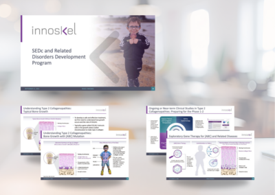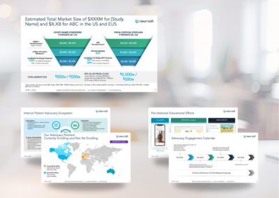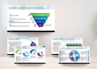 This collection features a variety of presentation decks that include high-science mechanism of action illustrations, infographics, clinical trial data graphs, and strategic messaging. Whether for pitches, webinars, or internal communications, each slide deck reflects my eye for visual storytelling, brand consistency, and clear messaging that connects with the audience.